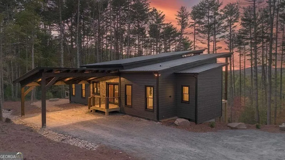 Welcome to this breathtaking new construction, located in the desirable, fully paved Bootleg Mountain Subdivision. This exceptional mountain retreat blends modern design with rustic charm, featuring custom rock work both inside and out, perfectly crafted to complement its serene mountain surroundings. The lot size is 3.9 private acres. Bedrooms: 3 spacious, well-appointed bedrooms. Bathrooms: 2 luxurious bathrooms. Living Area: Expansive open concept with abundant natural light and mountain views. As you step inside, you'll be immediately struck by the seamless fusion of contemporary elegance and mountain warmth. The inviting living space is anchored by beautiful leathered granite countertops throughout, paired with a striking rock backsplash in the kitchen, setting the tone for the home's design. A perfect balance of sheetrock and rustic lumber creates a stunning visual appeal, bringing a modern yet cozy feel to every room. Gourmet Kitchen: Custom cabinetry, leathered granite, and top-of-the-line appliances. Open Concept Living: Spacious living room and dining area flooded with natural light through expansive windows, offering breathtaking views of the surrounding mountains. Master Suite: Enjoy ultimate relaxation in the master bathroom, featuring a luxurious walk-in tile shower and a freestanding soaking tub. Fireplaces: 2 fireplaces, including a gas fireplace inside, a huge gas fire pit on the expansive outdoor party porch, plus a wood-burning fire pit to enjoy cool mountain evenings. Party Porch: Step out onto the massive, covered porch and take in the spectacular views. Perfect for entertaining guests or simply unwinding in peace and quiet. This home provides the perfect combination of privacy and luxury, offering easy access to nearby outdoor activities and the charming towns of Blue Ridge, Blairsville, and Murphy, NC. Whether you're looking for a serene getaway or a stunning full-time residence, this cabin offers it all. Schedule a showing today!