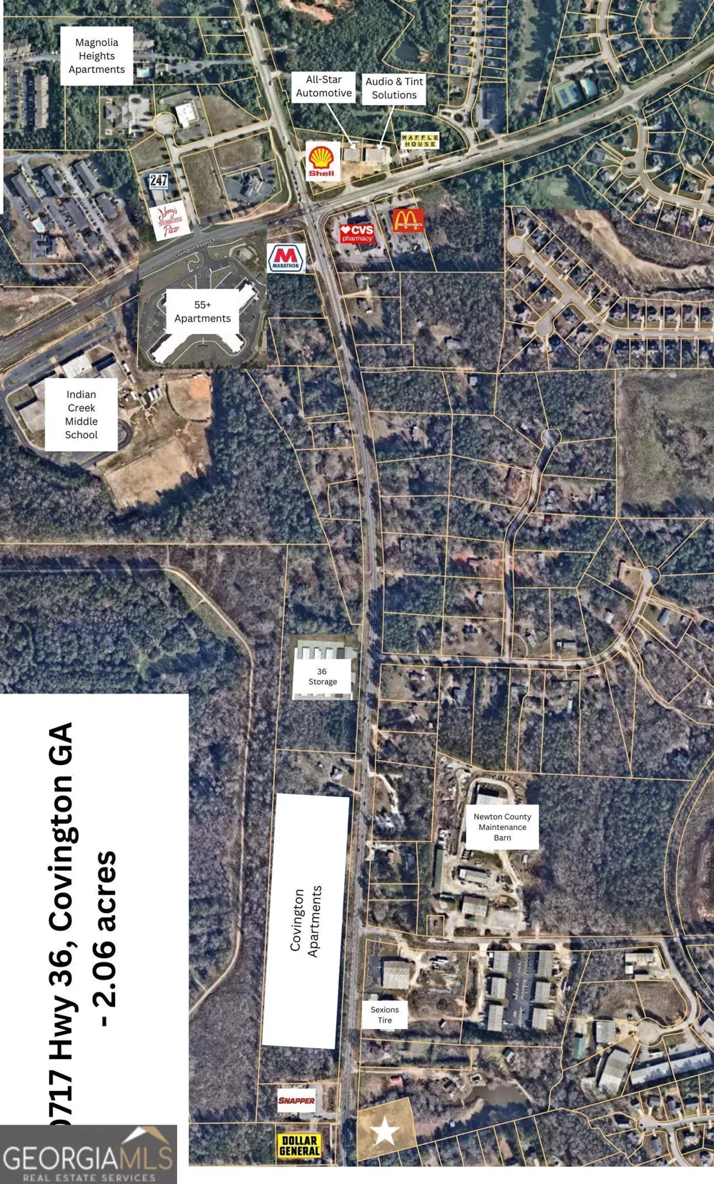 2+ acres With 300 feet of road frontage on Ga. Hwy 36 Facing the Dollar General store. This is a high traffic area. A great location for gas station, restaurant, retail etc.. You bring the dream, we have the perfect land lot. It is currently zoned Residential in a mixed use area. Can easily be changed to commercial zoning.