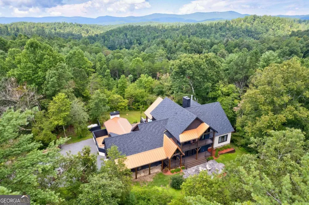 Welcome to Holly Hill Estate, an exceptional 13.56-acre property offering breathtaking year-round mountain views in every direction. Enter through gently rolling pastureland, pass the vintage barn, and arrive at a fully furnished residence that has undergone a meticulous two-year, top-to-bottom renovation with extraordinary attention to detail. Sweeping vistas are enjoyed from the expansive covered rear deck with heated swim spa, and a complete features list outlines the extensive improvements throughout. The chef's kitchen showcases custom white oak cabinetry, Quartzite countertops, and Monogram appliances, while a richly detailed den impresses with Renaissance-inspired custom cabinetry, marble and bronze inlays, a striking ceiling fresco, and a private deck with stone fireplace. The great room offers soaring ceilings, walls of glass capturing the views, custom cabinetry, a stone fireplace, and doors opening to the covered deck for seamless indoor-outdoor living and year-round entertaining. The serene main-level primary suite features a linear fireplace and spa-inspired bath, while the upper level includes three ensuite bedrooms, one oversized and ideal for a media room, game room, secondary living space, or bunkroom. Bespoke furnishings, custom lighting, and refined stone and wood accents sourced from around the world complete the luxurious interior. Designed for low-maintenance living, the exterior includes a new roof, soffits, fascia, gutters, no-fade siding, composite decking, cable railings, and new windows and doors throughout. Additional highlights include three HVAC units, a whole-house generator, three propane tanks, fiber-optic internet, four fireplaces, and over 2,280 square feet of finished outdoor living space. Perfect as a full-time residence, second home, or vacation rental. Near Ellijay and Blue Ridge. GA.